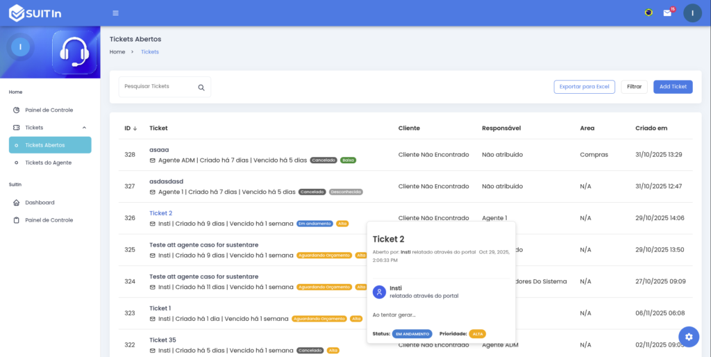 O SUIT In combina simplicidade de uso com recursos empresariais robustos e com preço acessível (confira os planos). Nossa plataforma tem interface intuitiva e é especializada em gestão de serviços internos e externos corporativos, diferente de ferramentas genéricas de gestão de trabalho que exigem configuração extensa. Com suporte rápido.